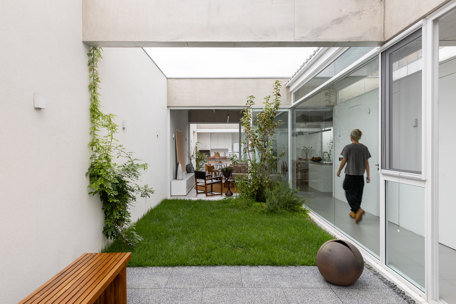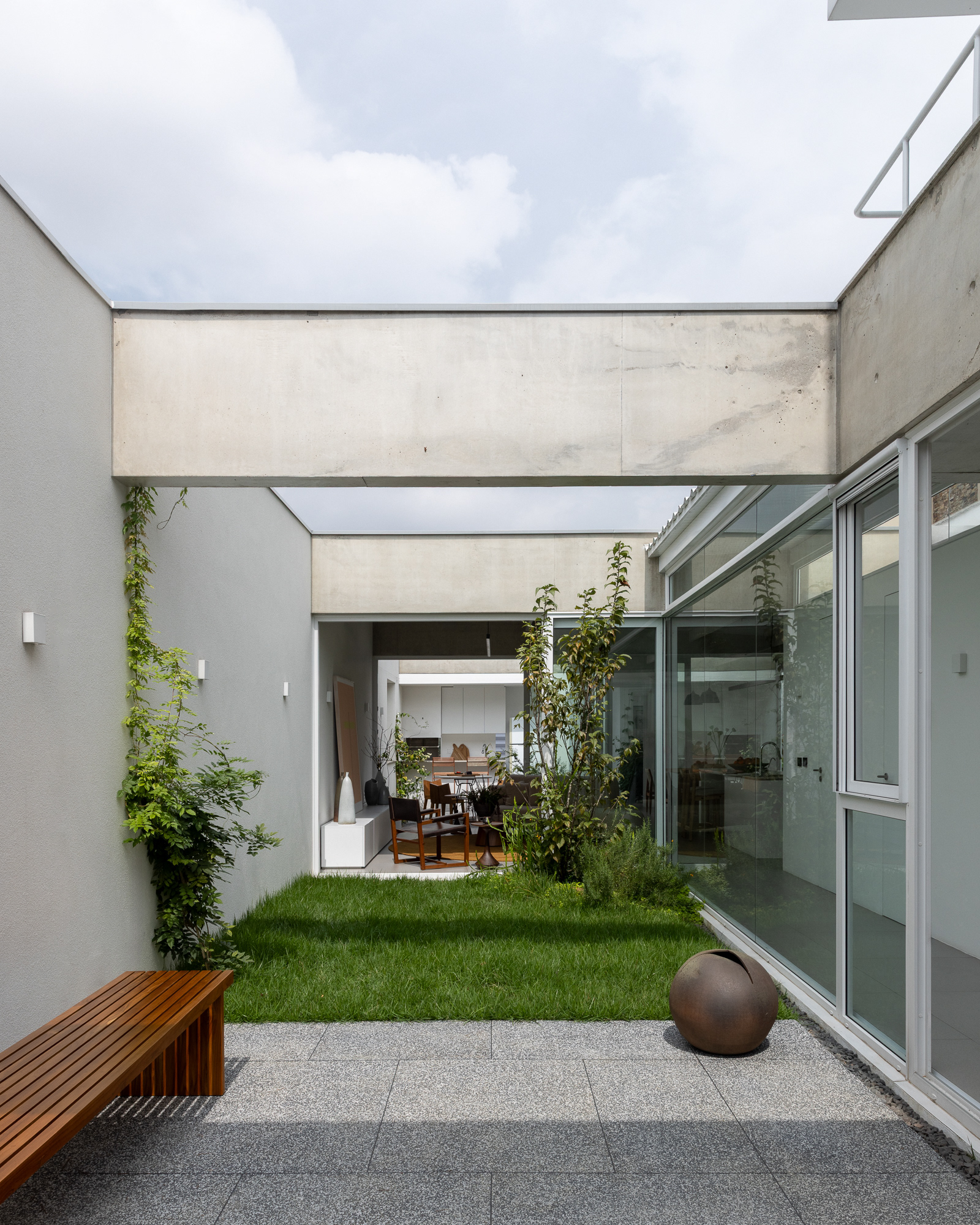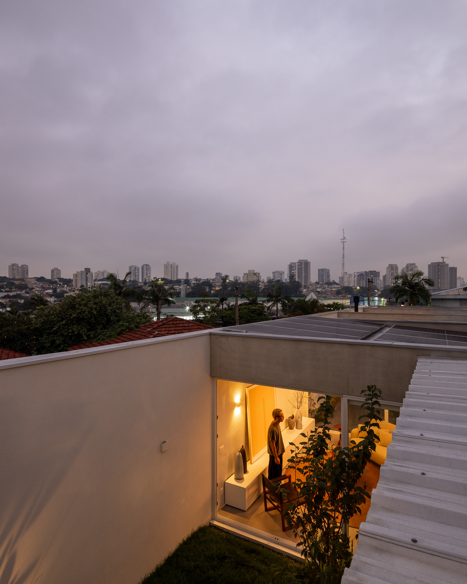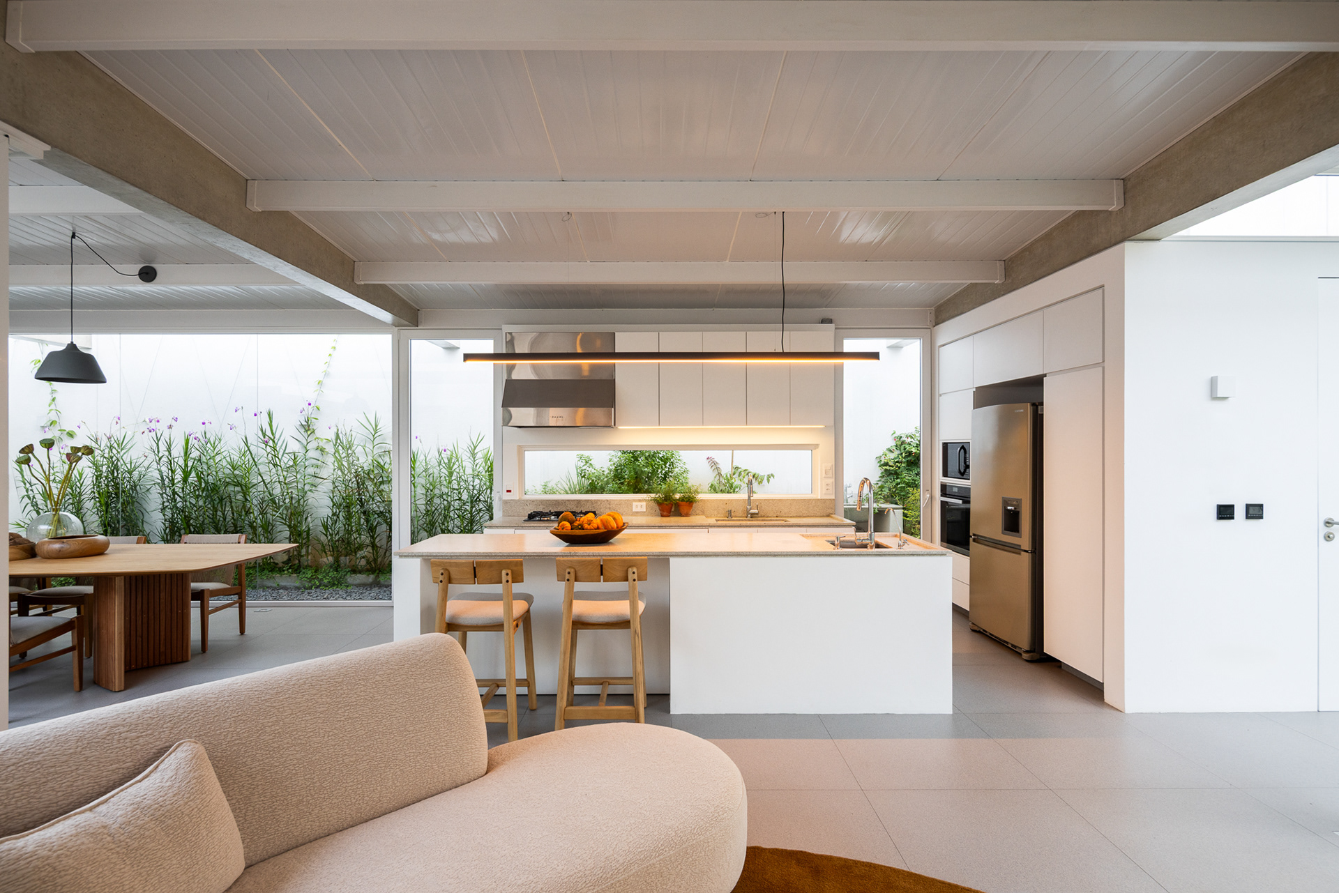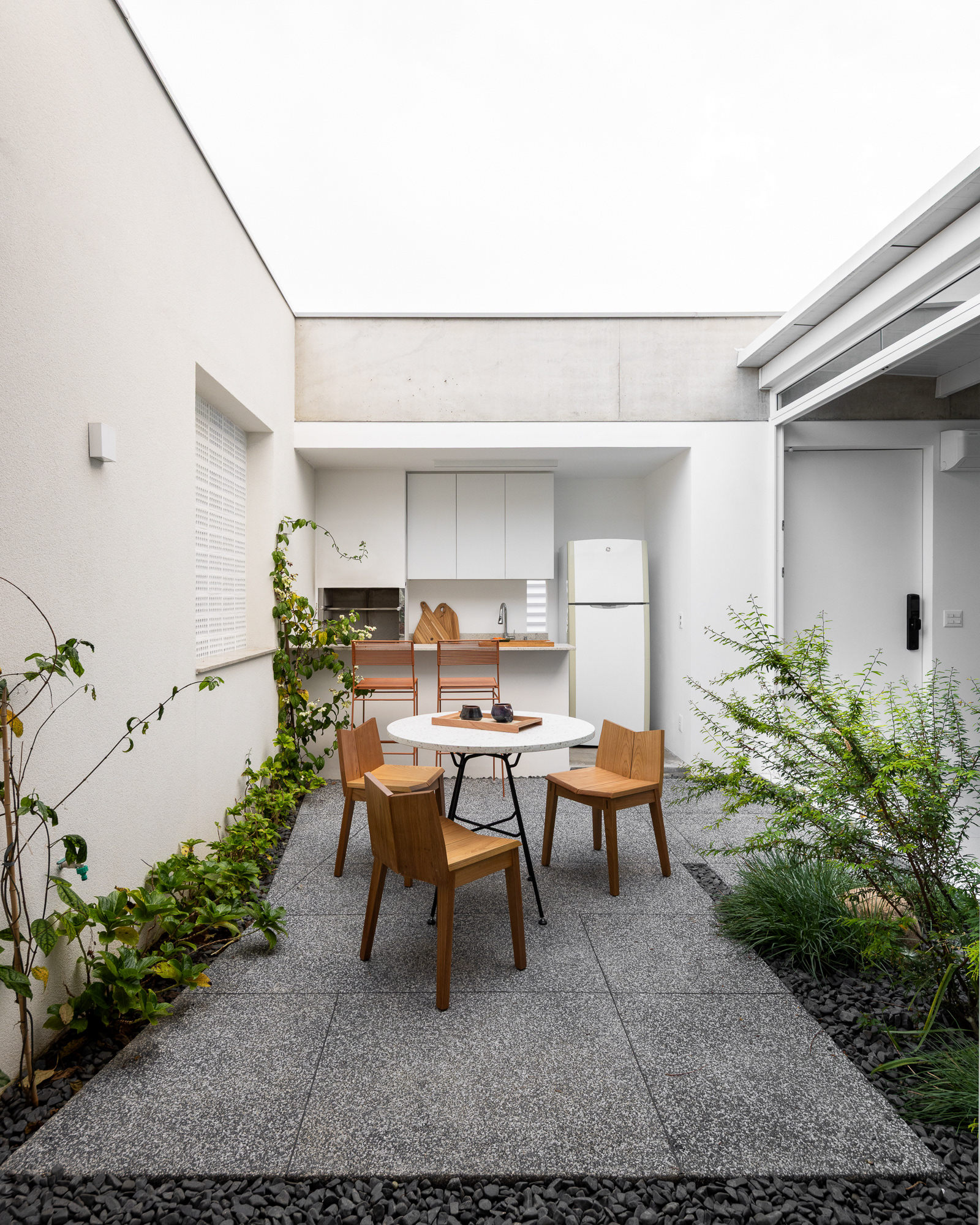 área construída: 260m² área do terreno: 437m² 2020-2024 | São Paulo - SP Projeto: SANPO + Península Paisagismo: A Seiva Produção: Tiago Cappi Mobiliário: Fernando Jaeger Fotografia: Maira Acayaba