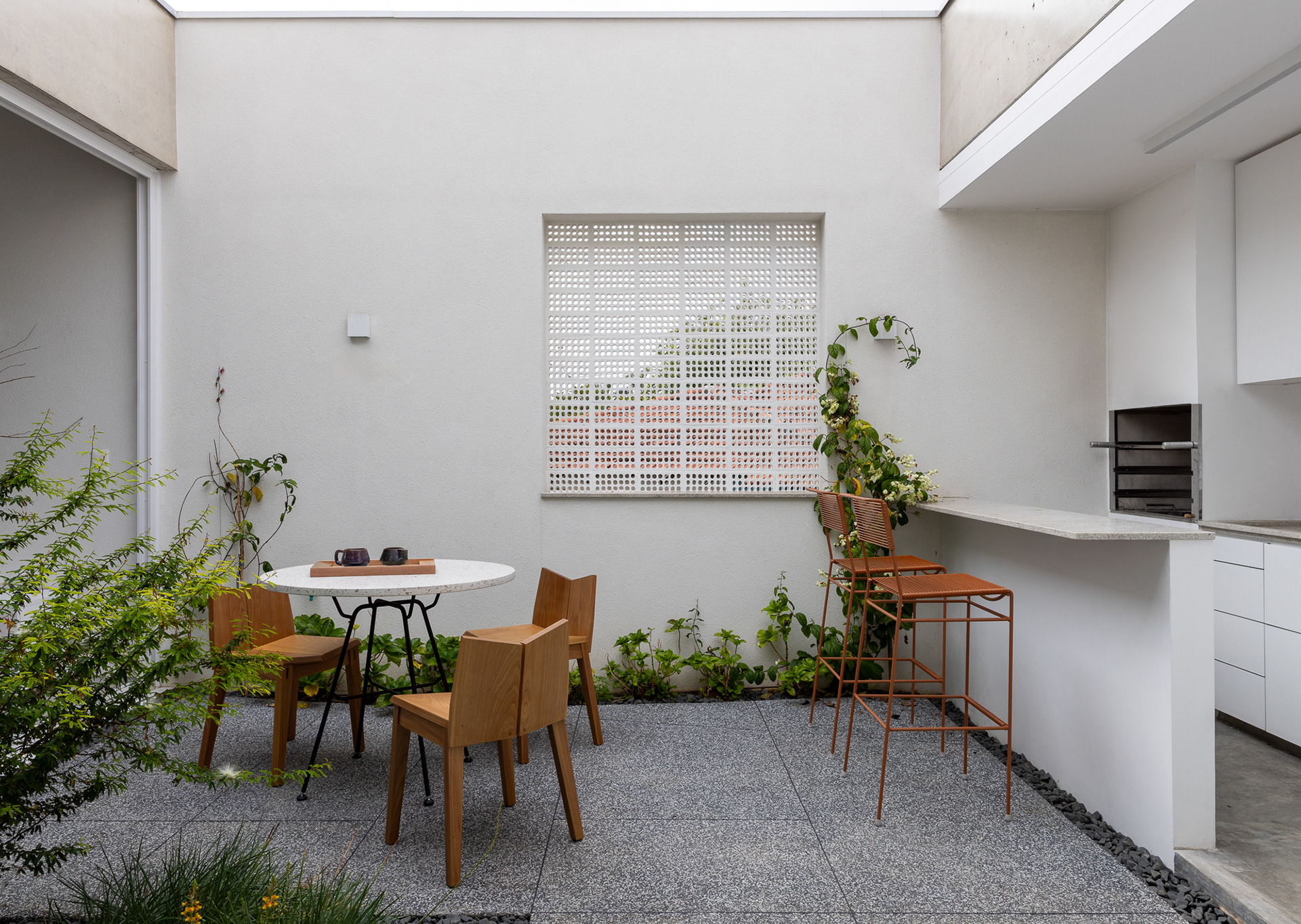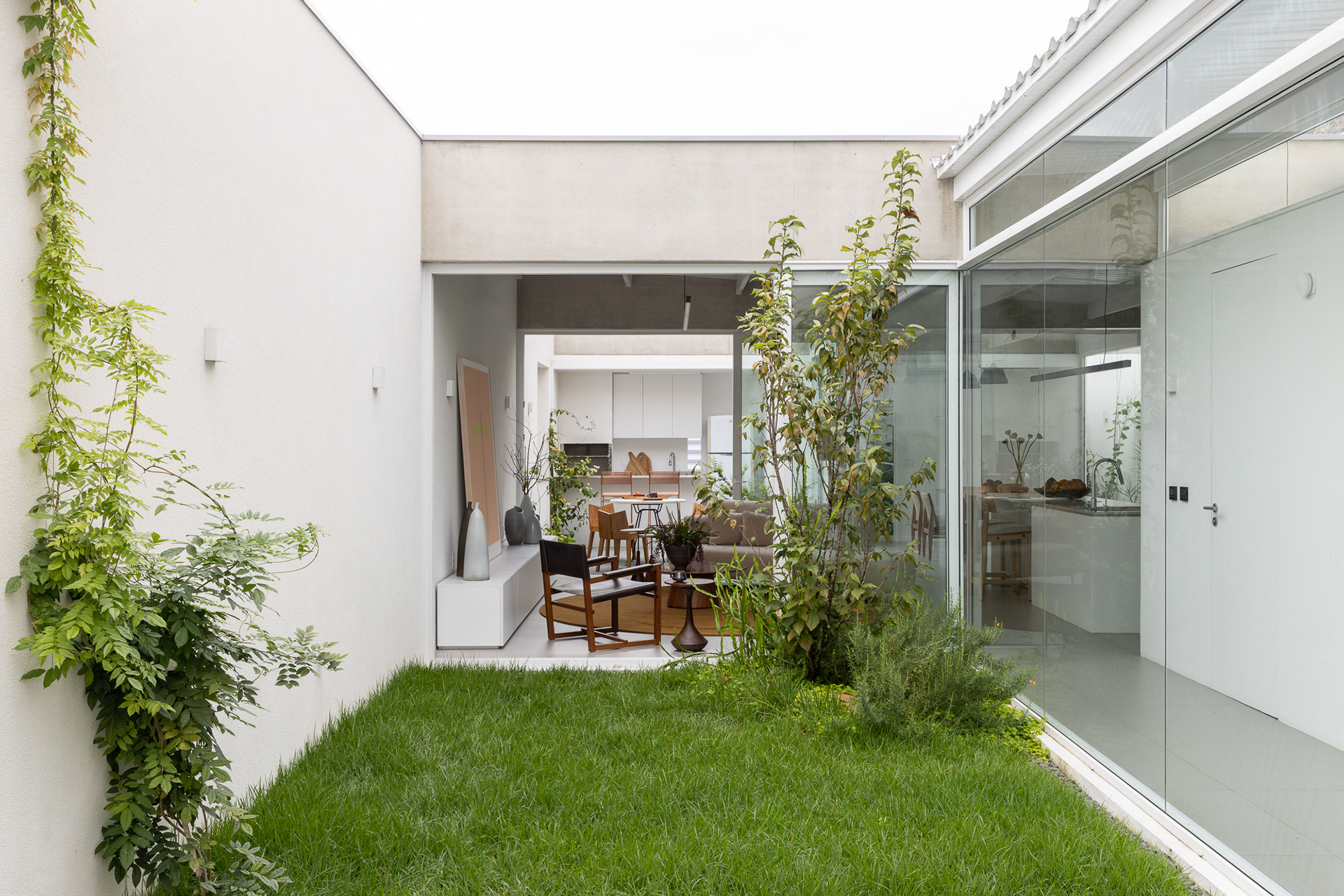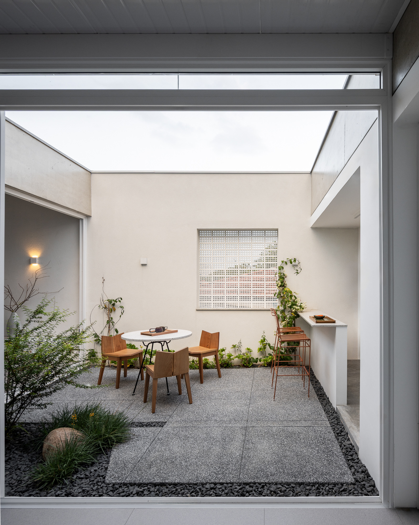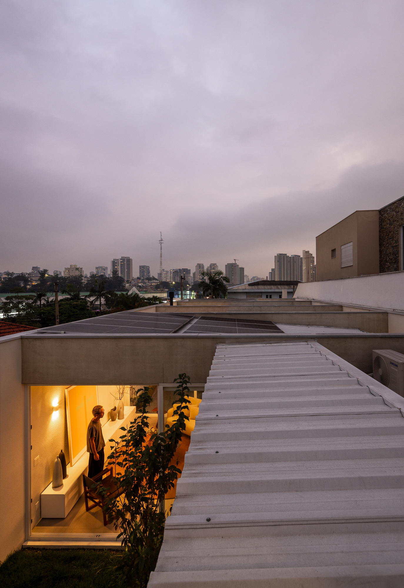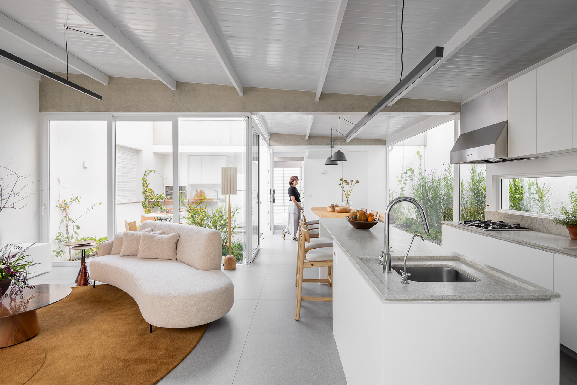 área construída: 260m² área do terreno: 437m² 2020-2024 | São Paulo - SP Projeto: SANPO + Península Paisagismo: A Seiva Produção: Tiago Cappi Mobiliário: Fernando Jaeger Fotografia: Maira Acayaba