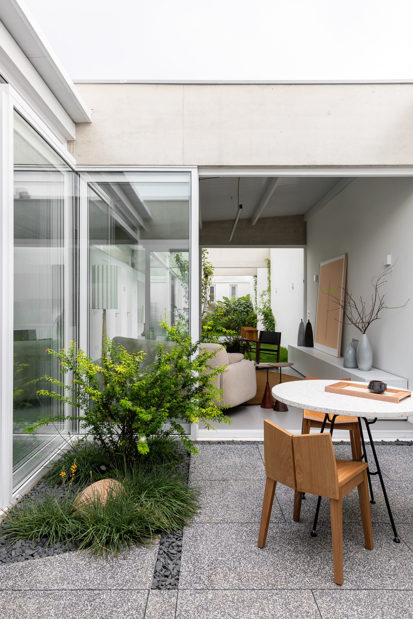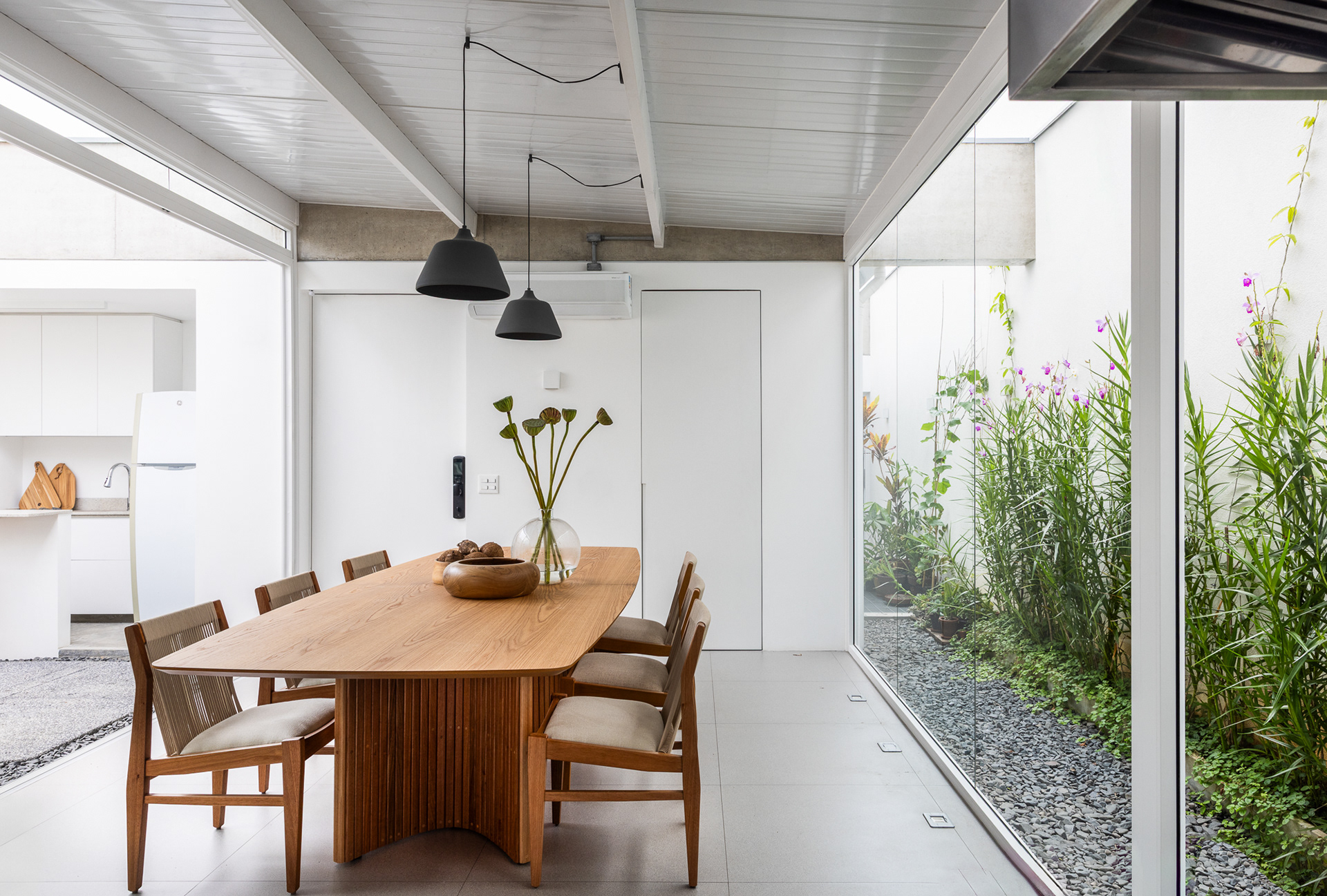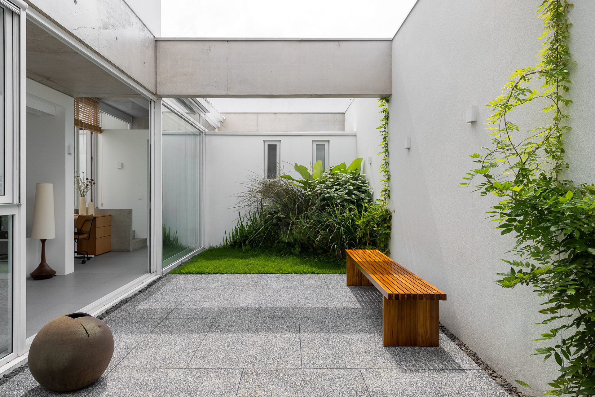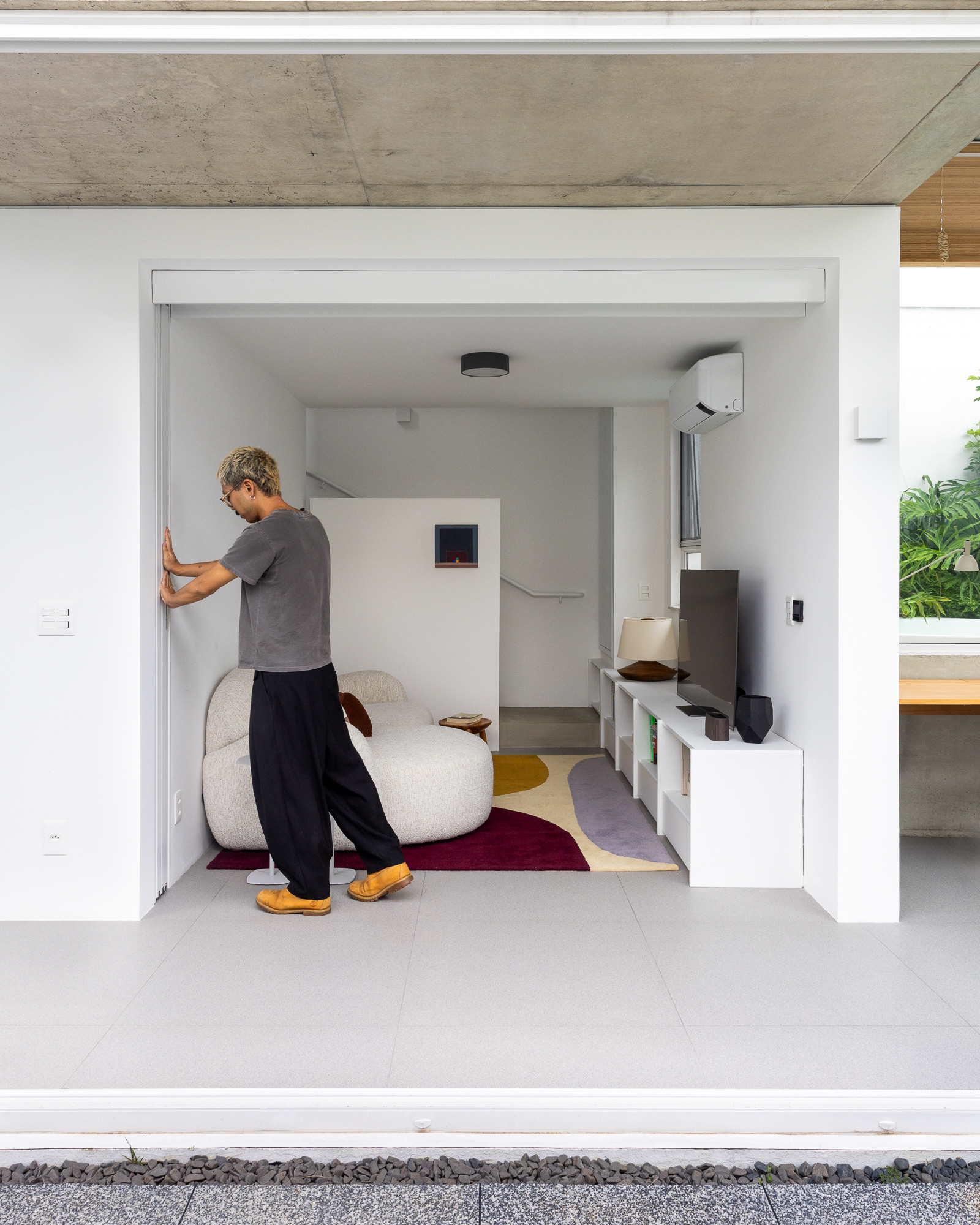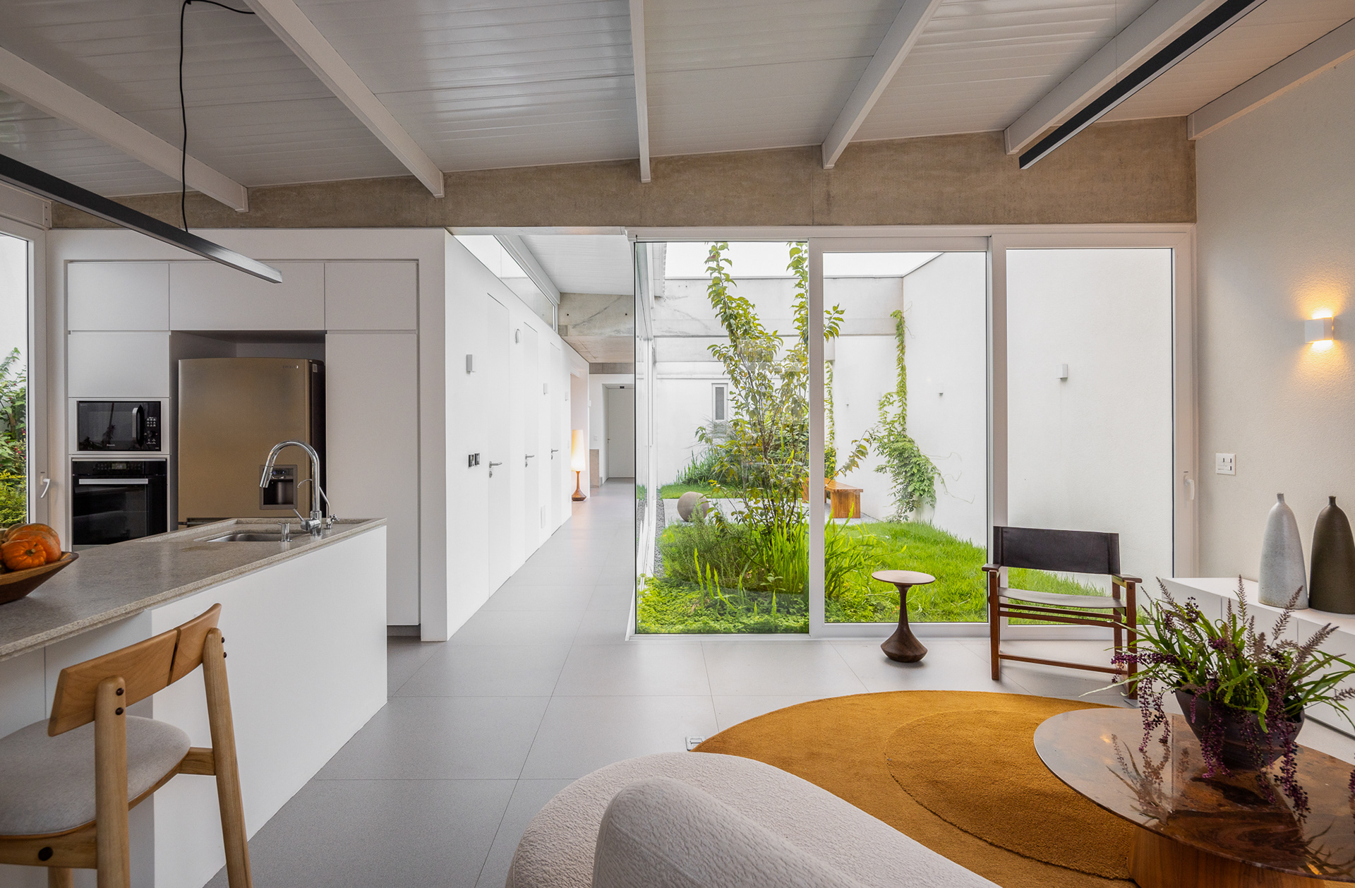 área construída: 260m² área do terreno: 437m² 2020-2024 | São Paulo - SP Projeto: SANPO + Península Paisagismo: A Seiva Produção: Tiago Cappi Mobiliário: Fernando Jaeger Fotografia: Maira Acayaba