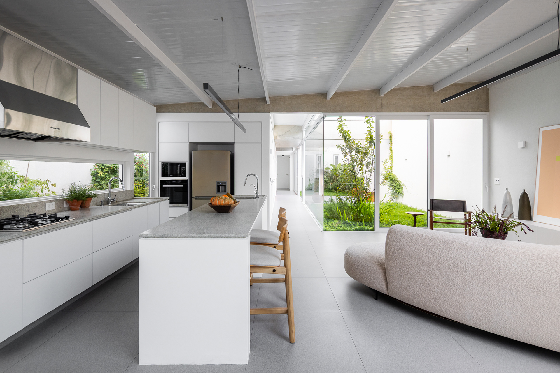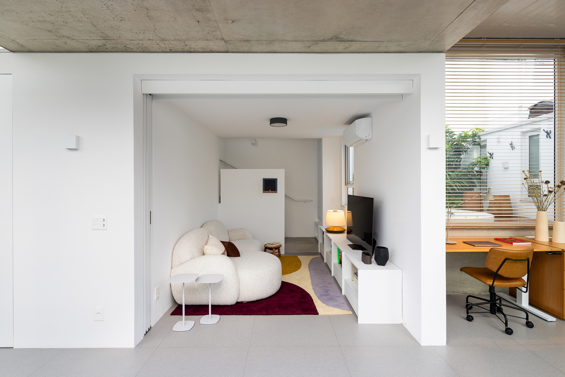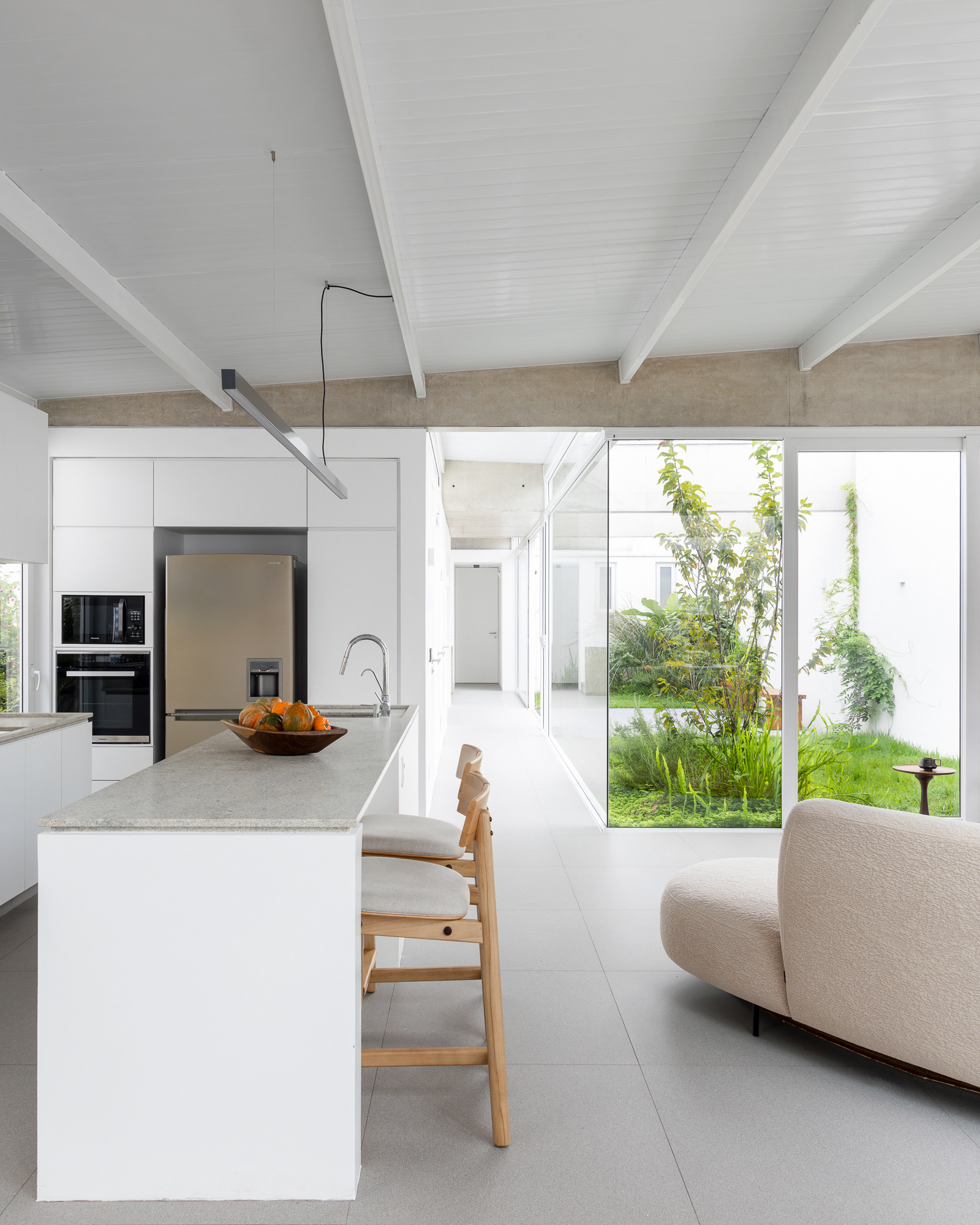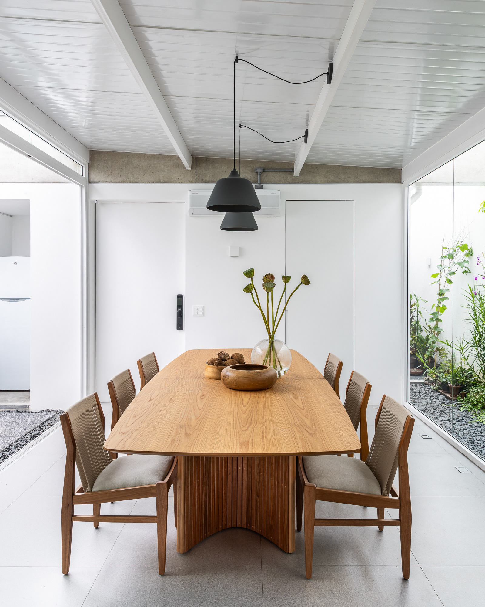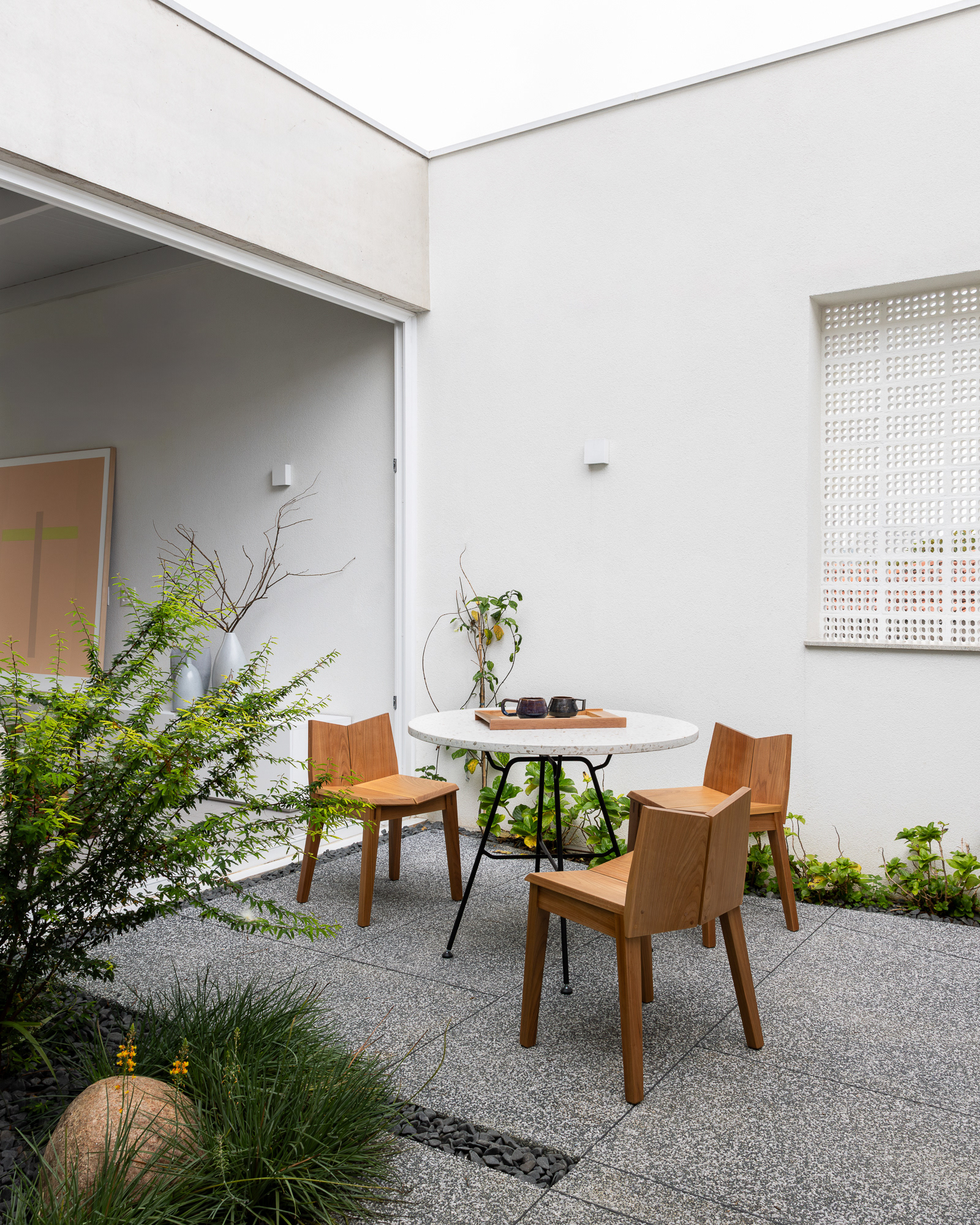 área construída: 260m² área do terreno: 437m² 2020-2024 | São Paulo - SP Projeto: SANPO + Península Paisagismo: A Seiva Produção: Tiago Cappi Mobiliário: Fernando Jaeger Fotografia: Maira Acayaba